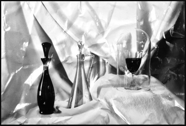 Il silenzio virtuoso del vino versato, come sangue da tavola, sotto la calva campana di vetro.